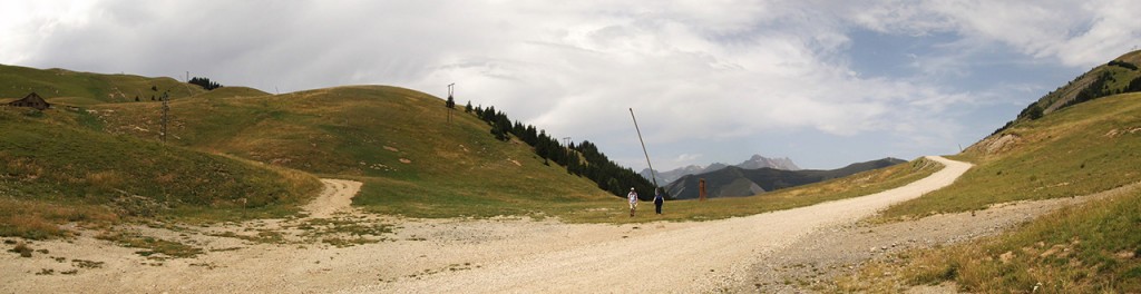 Vous grimperez peinard les 1300 derniers mètres, la pente n’est pas trop forte – 7%. Vous atteindrez enfin le Col de Maronne à 1697 m. Le panorama est superbe ! Au Nord : la Grande Sure qui se trouve au-dessus de l’Alpe d’Huez avec à droite le Col du Poutran. A l’Est, la Montagne de l’Homme et son Signal (2176 m). Au Sud, la montée de Bons avec son balcon avec le Massif des Ecrins juste au-dessus.